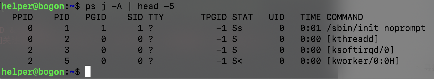 ps -w ajfx可以看到具体的PPID、PID、PGID、SID 信息