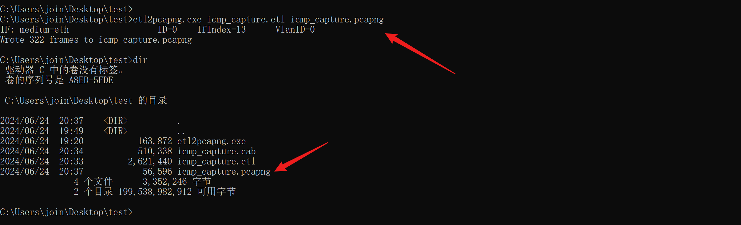 我们需要将 .etl 格式的包转化为 Wireshark 能够解析的包,这需要 etl2pcapng.exe